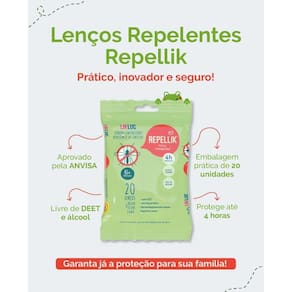 Os lenços repelentes Repellik da LikLuc são a forma mais prática e segura de manter sua família livre de mosquitos e insetos, incluindo os transmissores de dengue, zika e chikungunya. Desenvolvidos com tecnologia de ponta e ativos comprovados, oferecem até 4 horas de proteção contínua para bebês, crianças e adultos.