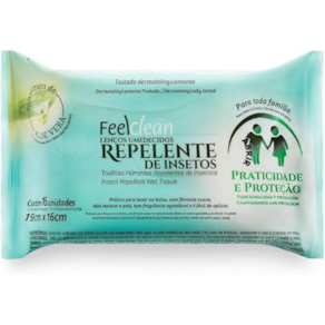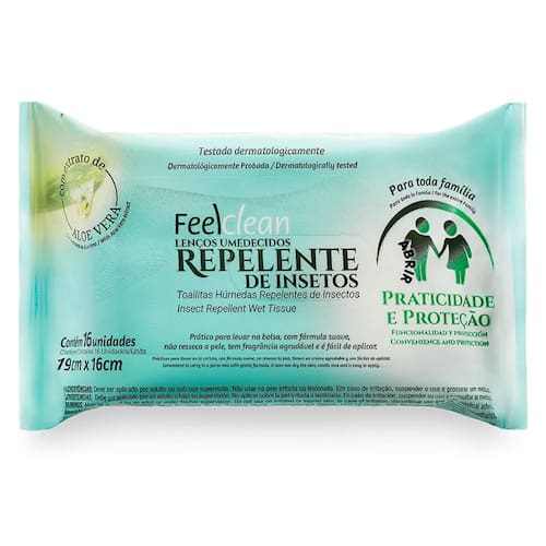 O lenço umedecido repelente de insetos FEELCLEAN oferece proteção contra mosquitos, pernilongos e outros insetos, incluindo o mosquito transmissor do zika vírus, febre chikungunya e dengue. Testes laboratoriais comprovam a eficácia repelente contra as espécies Aedes aegypti, Anopheles albimanus e Culex quinquefasciatus.