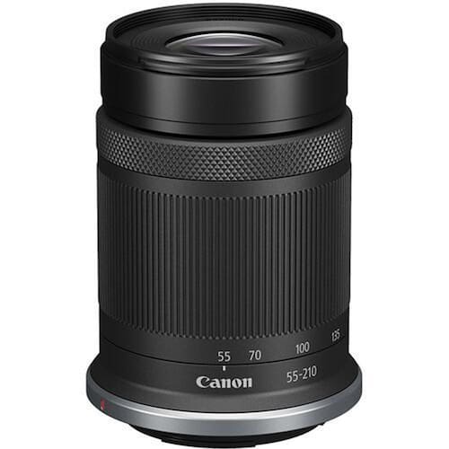 Lente canon rf-s 55-210mm f/5-7.1 is stm br Lente de formato aps-c 88-336 mm equivalente a quadro completo Motor af de passo stm Estabilizador óptico de imagem Dois elementos de dispersão ultrabaixa Revestimento super spectra Diafragma arredondado de 9 lâminas Design compacto e leve