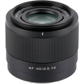 Lente viltrox af 40mm f/2.5 fe para sony Full-frame f/2.5 a f/16 Motor af de passo stm Um elemento ed, três elementos hr Dez elementos de lente em seis grupos Suporta transmissão de dados exif Distância mínima de foco: 1,1'