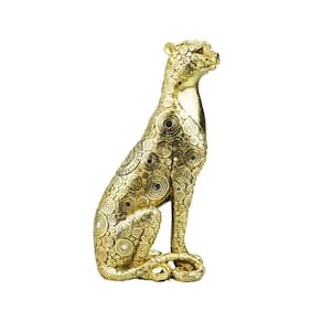 Aprecie a beleza e elegância desta escultura de leopardo dourado em poliresina.