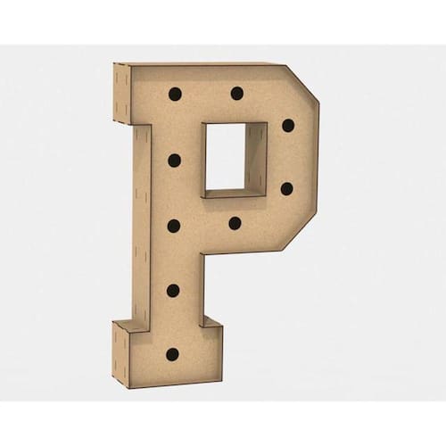 Letra Caixa Grande P Mdf 80Cm Altura Furo Lampada Iluminação:
