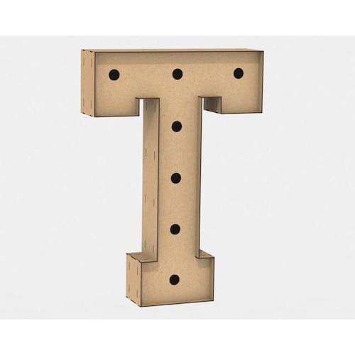 Letra caixa grande T em MDF com 80cm de altura e furo para lâmpada. Ideal para decoração de ambientes, festas e eventos. Feita em MDF cru de alta qualidade com profundidade de 12cm. Resistente e durável. Leve e fácil de transportar, enviada desmontada. Montagem simples com cola branca, cola instantânea ou cola de madeira. Furo traseiro para encaixar lâmpada tipo camarim Bocal E27 . Proporciona efeito luminoso incrível. Personalize a sua decoração com a Letra Caixa Grande T MDF 80cm Marca: Doce Arte Em Madeira Ean: 7807720735471
