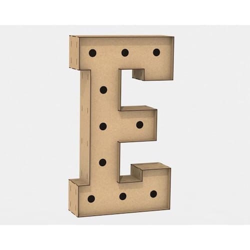Letra Caixa Grande E Mdf 80Cm Altura Furo Lampada Iluminação é uma peça perfeita para decoração de ambientes. Com 80cm de altura, feita em MDF cru de 3mm, essa letra é resistente e durável. Desmontada para facilitar o transporte, pode ser colada com diversos tipos de cola. Acompanha furo para lâmpada tipo camarim, com bocal E27. Adicione uma lâmpada e crie um efeito luminoso incrível. Marca: Doce Arte Em Madeira