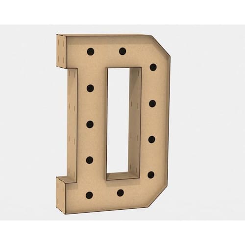 Letra Caixa Grande D Mdf 80Cm Altura Furo Lampada Iluminação