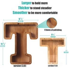 Tem problemas para pegar um presente para seus filhos ou netos? Aqui está ela! Nosso cofrinho grande e extra grande em forma de carta, feito de madeira 100% orgânica. É o presente perfeito para bebês/crianças/ou qualquer pessoa com seus nomes em inglês! O vidro acrílico na parte superior permite ver através da caixa de moedas e avaliar o progresso da economia de dinheiro. Há um compartimento para moedas na parte superior, onde as moedas devem ser jogadas. E o compartimento é amplo o suficiente para qualquer moeda e notas. Você também pode ter seu nome completo gravado a laser no acrílico, o que o tornará único para você ou para a pessoa que você ama. Como tirar o dinheiro? Você pode abrir a caixa de dinheiro desparafusando vários parafusos pequenos e remover o vidro acrílico. - Brinquedo educativo e divertido – as crianças vão adorar o cofrinho com seu próprio nome inicial e painel de cofrinho transparente vai intrigá-las para observar o crescimento da economia. Ideia de presente perfeita para recém-nascidos, meninos, meninas. - 👍 Design exclusivo – Este é um banco de dinheiro em forma de letra grande, feito de madeira 100% orgânica. A tampa de vidro acrílico transparente permite ver através da moeda dentro e avaliar o progresso da economia de dinheiro. - 👍 Mais seguro e confortável – Fizemos maior e mais espesso ficar estável e polido 4 vezes para torná-lo mais confortável. Pode ser utilizado como decoração para loja ou presente de casamento também. - 👍 PODE SER PERSONALIZADO – Temos letras maiúsculas de A-Z mais "$" "&" "?" forma para você personalizar qualquer combinação que você gosta. Também fornecemos serviço de gravação a laser com nome completo na capa frontal e serviço de gravação de texto na parte de trás com custo extra. Verifique o link em nossa loja. - 👍 Qualidade premium e serviço pós-venda – Temos orgulho da qualidade e originalidade dos nossos cofrinhos de madeira para adultos e crianças, e é por isso que eles vêm com uma garantia de satisfação para garantir sua felicidade total.