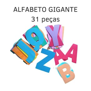 Letras gigante em eva alfabeto vogais grande 31 peças painel Alfabeto gigante + vogais 31 peças, aproximadamente 21 cm As letras gigantes de eva evamax, contêm todas as letras do alfabeto de a a z. Desenvolvidas para auxiliar no processo de alfabetização, formar palavras, frases, expressões, nomes e muito mais O eva evamax é colorido, macio, atóxico e inodoro. Indicado para maiores de 3 anos. Conteúdo da embalagem: 31 letras gigantes abc + vogais Medida da peça: 21 cm. Total de peças na embalagem: 31 peças. Espessura: 0,2 mm. Cor: , conforme fabricação. Marca: Não Informado