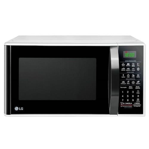 Micro-ondas LG Limpa Facil EasyClean com capacidade de 30 litros, 800W de potência, revestimento interno que facilita a limpeza, tecnologia i-Wave para cozimento uniforme, função ECO ON para economia de energia e 16 receitas pré-programadas.Função Grill