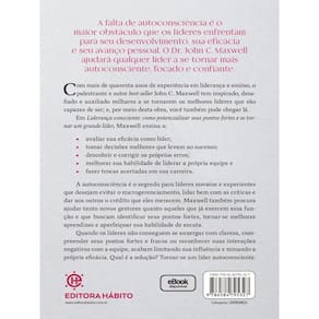 A falta de autoconsciência é o maior obstáculo que os líderes enfrentam para seu desenvolvimento, sua eficácia e seu avanço pessoal. O Dr. John C. Maxwell ajudará qualquer líder a se tornar mais autoconsciente, focado e confiante. Com mais de quarenta anos de experiência em liderança e ensino, o palestrante e autor best-seller John C. Maxwell tem inspirado, desafiado e auxiliado milhares a se tornarem os melhores líderes que são capazes de ser; e, por meio desta obra, você também pode chegar lá. Em Liderança consciente: como potencializar seus pontos fortes e se tornar um grande líder, Maxwell ensina a: • avaliar sua eficácia como líder; • tomar decisões melhores que levam ao sucesso; • descobrir e corrigir os próprios erros; • melhorar sua habilidade de liderar a própria equipe e • fazer trocas acertadas em sua carreira. Marca: HABITO EDITORA