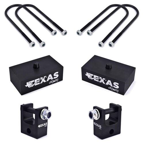 Especificações: Kit lift de 2 polegadas para subir 5 cm de altura na traseira. Calços traseiros e prologadores fabricados em alumínio anodizado. Grampos fabricados em aço 1020. Pintura preto fosco. Não precisa de adaptações.