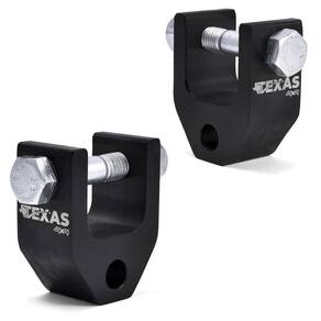 Especificações: Kit lift de 2 polegadas para subir 5 cm de altura na dianteira e traseira. Calços traseiros fabricados em pu poliuretano . Calços dianteiros e prologadores fabricados em alumínio anodizado. Pintura preta fosca. Não precisa de adaptações.