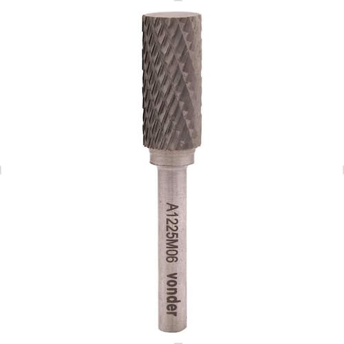 Ref.: 4312122501. Marca: Vonder. Modelo: LAV0012. Formato da lima: Cilíndrica. Diâmetro: 12,0 mm. Comprimento útil: 25,0 mm. Diâmetro da haste: 6,0 mm. Comprimento total: 65,0 mm. Rotação máxima: 20.000/min. Massa aproximada peso : 0,05 kg.
