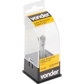 Marca: VonderConteúdo da Embalagem:1 Lima rotativaDestaques e diferenciais:Oferece conforto e maior segurança, reduz o esforço sobre o equipamento e possui alta produtividade. Conta com ponta de vídea/metal duro que proporciona maior vida útil.Aplicações e dicas de uso:Utilizada em retificadeira para desbaste e acabamento em metais, como: cordão de solda, rebarbações em geral e demais operações que necessitam a remoção de materialCaracterísticas Técnicas:Forma da lima rotativa: Cônica 90º Diâmetro da lima rotativa: 8,0 mm Comprimento total da lima rotativa: 50,0 mm Diâmetro da haste da lima rotativa: 6,0 mm