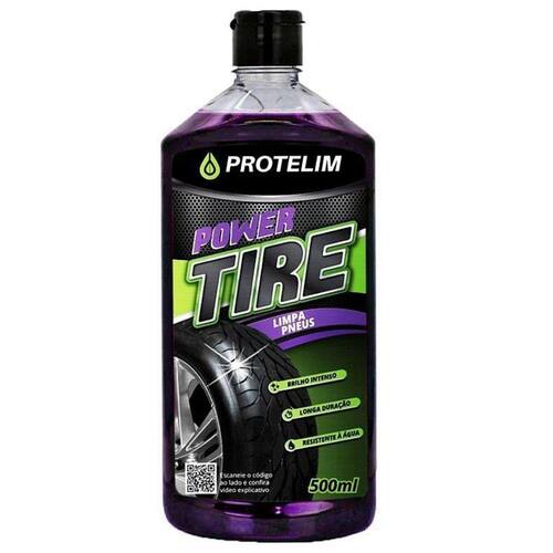 DETALHES DO limpa Pneus power tire 500ml protelim: Hidratante de longa duração para uso em pneus, proporciona brilho intenso por semanas. Proporciona alta fixação na superfície e resistência a água. Não indicado para uso em motos. USO: Certifique-se que a superfície esteja limpa e seca. Com o auxílio de um aplicador de espuma, aplique sob a banda lateral do produto. Repita a operação se necessário.