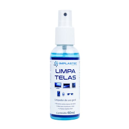 O Spray de Limpeza de Telas Implastec Clean 60ml é a escolha ideal para manter telas eletrônicas sempre limpas e sem marcas. Sua fórmula foi desenvolvida especialmente para a limpeza segura de LCD, LED, OLED e Plasma, sendo compatível com monitores, notebooks, TVs, celulares, tablets e outros dispositivos. Com propriedades anti-estáticas e anti-manchas, ele remove poeira, gordura e impressões digitais sem comprometer a qualidade da tela.