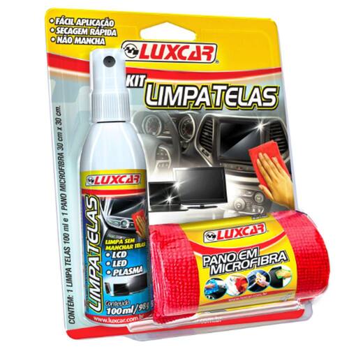 Kit Limpa Telas LuxcarKit 2 em 1Com o Limpa Telas Luxcar você remove de suas telas poeira, marcas de dedos e outras partículas com facilidade sem manchá-las. Ideal para limpeza de centrais multimídias, telas de sistemas de som automotivo, telas de notebooks, celulares, tablets, televisores de LCD, LED ou Plasma, espelhos, relógios, etc.. Vantagens:Fácil aplicação.Não mancha. Modo de usar:Aplique o produto em toda a tela, seque utilizando o pano microfibra e pronto, sua tela estará livre de poeira, marcas de dedos e gorduras ATENÇÃO: Cuidado para o produto não escorrer e entrar em contato com os circuitos eletrônicos. Validade 24 meses.