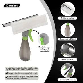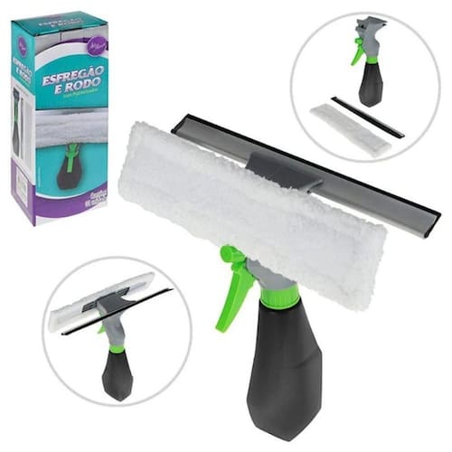 Limpa Vidro 3em1 Rodo Esponja Microfibra Borrifador Limpeza Descrição do Produto O Limpa Vidros 3 em 1 com borrifador, esponja de microfibra e rodo é a solução completa para deixar superfícies de vidro limpas e cristalinas em poucos minutos. Ele borrifa, limpa e seca em um só produto, removendo sujeira, manchas, poeira e marcas de dedos sem deixar resíduos. Compacto e leve, é ideal para janelas, espelhos e box de banheiro. Benefícios do Limpa Vidros 3 em 1 - 3 funções em um único produto: borrifa, limpa e seca - Reservatório de 250 ml para água ou produto de limpeza - Cabo ergonômico e leve para manuseio fácil - Refil em microfibra que remove sujeira sem riscar - Rodo de silicone que elimina excesso de líquido sem manchas - Design compacto que facilita o armazenamento