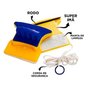 Poderosos ímãs internos que ajudam na limpeza dos dois lados do vidro, com auxílio de uma esponja com um rodo de borracha, o que tem a fazer é deslizar o limpador magnético para limpar completamente o vidro dos dois lados.