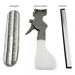Itens inclusos: - Rodo Emborrachado - Pulverizador - Esfregão - Recipiente com capacidade para 250 ml