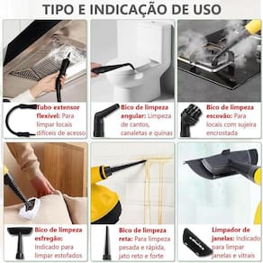 Limpador a vapor portátil com alta pressão e temperatura para limpeza de ambientes, móveis, automóveis e motocicletas. Ideal para higienização e saúde do lar.Lâmpada piloto