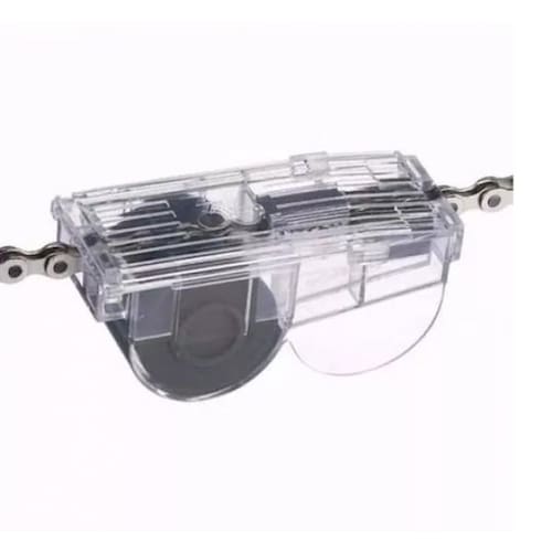 Limpador de correntes com escovas, de fácil manuseio e sem necessidade de desmontar a corrente da bike,