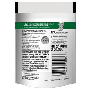 - O limpador de lava-louças Cascade ajuda a eliminar odores e remover o acúmulo de calcário e a gordura para revelar uma máquina mais fresca e limpa
