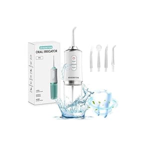 . Irrigador dentário portátil com 2 pontas de limpador oral Ajuda na limpeza interdental. Este irrigador oral pode reduzir efetivamente resíduos de alimentos, germes e sujeira, ajudando a melhorar a condição bucal.. Sistema de propulsão a jato que substitui o fio dental. Obtenha resultados rápidos, fáceis e sem dor. Remova cuidadosamente a placa e limpe as superfícies difíceis de alcançar. O design ergonômico e a ponta de baixo perfil ajudam a alcançar os dentes posteriores. Capacidade 220 ML. Material: ABS. Potência 3,5w. Peso 250g aprox. Tensão: 5V. 3 modos de limpeza diferentes. Deixe o botão liga/desliga pressionado para alterar o modo de limpeza. APENAS 4 PONTOS OU PONTOS DE IRRIGAÇÃO.
