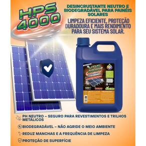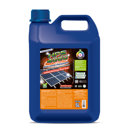 HPS 4000 é um Limpador Desincrustante e Desengraxante. Possui tensoativos biodegradáveis, sendo PH Neutro com alto poder de limpeza. É indicado para limpeza de sistemas de Painéis Solares, incluindo sua estrutura de apoio.