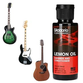 Limpador de escalas Óleo de Limão DAddario Violão Guitarra Baixo O Óleo de Limão da D'Addario e um limpador natural desenvolvido para remover sujeira e hidratar o instrumento, evitando o ressecamento e prolongando a vida útil.
