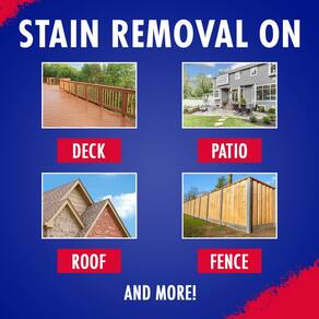 - Funciona em uma variedade de superfícies diferentes: decks de madeira, calçadas de concreto, calçadas de asfalto, paredes de tijolos, a maioria dos toldos de lona, móveis de plástico ao ar livre, revestimento de vinil e muito mais