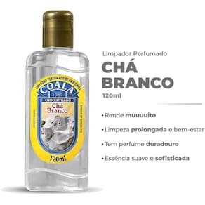Limpador Perfumado De Ambientes 120ml Coala Chá Branco Fragrancia: Chá Branco Limpador perfumado de ambientes Coala Chá Branco 120ml. Produto concentrado, rende mais, perfuma e limpa com sensação prolongada de bem-estar. Deixe sua casa com aroma de limpeza e frescor com o Limpador Perfumado Coala Chá Branco 120ml. Com fórmula concentrada, ele oferece alta performance na limpeza leve de ambientes enquanto libera um perfume agradável e duradouro. Ideal para quem busca praticidade, economia e aquele cheirinho de casa limpa todos os dias. Basta algumas gotas diluídas em água para transformar a energia do ambiente com uma fragrância suave e sofisticada. Benefícios do Limpador Perfumado Coala: Fórmula concentrada: alto rendimento e economia Fragrância de Chá Branco: leve, fresca e duradoura Prolonga a sensação de bem-estar e limpeza Pode ser em todos os ambientes Ideal para o dia a dia Fácil de usar: só diluir e aplicar com pano úmido Modo de Usar: Dilua 8 gotas do produto em 1 litro de água limpa. Umedeça um pano na solução. Aplique sobre a superfície desejada. Deixe secar naturalmente. Indicado para pisos frios, bancadas, superfícies laváveis e aromatização de áreas internas. Informações Técnicas: Produto: Limpador Perfumado de Ambientes Fragrância: Chá Branco Volume: 120 ml Tipo: Concentrado Marca: Coala Essências Aromáticas Rendimento: Várias aplicações com diluição Categoria: Aromatizantes e limpeza leve Cuidados e Armazenamento: Mantenha fora do alcance de crianças e pets Evite exposição ao sol ou calor excessivo Armazene em local seco e ventilado Não ingerir ou aplicar sobre a pele O que significa concentrado Significa que deve ser diluído antes do uso. Isso garante mais rendimento e economia. Pode aplicar direto Não. Para melhores resultados e segurança das superfícies, utilize sempre diluído. Posso usar em qualquer superfície Recomenda-se fazer um teste em uma pequena área antes de aplicar por completo. Pode ser todos os dias Sim. A fórmula é leve e indicada para uso frequente.