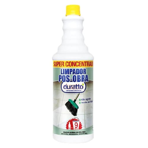 Limpador Pós Obra Concentrado Duratto 1L Não Agride Aplicações: Este produto pode ser utilizado em qualquer tipo de piso e superfície lavável, tais como, cerâmicas, mármores, granitos, granilite, pastilhas cerâmicas/vidro , azulejos, ardósia, - limpeza pós-obra - limpeza pesada Produto formulado e desenvolvido para limpeza das sujidades superficiais do pós-obra, a qual deixa resíduos típicos, tais como excesso de rejunte, argamassa, cracas de cimento, gesso e terra. Recomendações do limpador pós obra concentrado duratto 1l não agride Recomendamos a utilização deste produto em todos os tipos de superfícies laváveis. Ideal para limpeza pós obra em mármores, granitos, granilites e piso cimentício. Aguardar 72 horas após o rejuntamento para utilização deste produto. Rende até 90 m / litro. Produto concentrado. Modo de usar diluir o produto na proporção indicada de acordo com o tipo de limpeza descrita na tabela de diluição, no rótulo do produto. Aplicar sobre a superfície com auxílio de um esfregão ou vassoura. Deixar o produto agir por 10 minutos. Depois esfregar e enxaguar com água. Repetir a operação caso não remova completamente os resíduos. Ean: 7896614809893