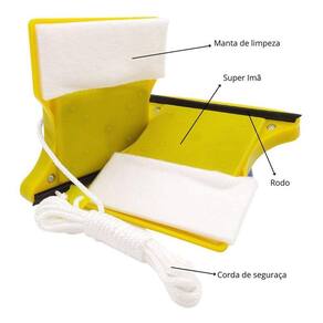 -indicado para vidros planos de 6mm até 10mm de espessura -fácil de usar e super eficiente -possui duas partes magnetizadas em polipropileno com rodo borracha -cumpre todas as etapas da limpeza possui esponja e rodo -possui corda de segurança para limpador externo -materiais: imã interno, coporto de polipropileno, rodo de borracha, feltro em fibra de raiom e cordinha de algodão -acompanha 2 feltros reservas -medidas: 12cm x 11cm x 6cm - barbante: 70 cm