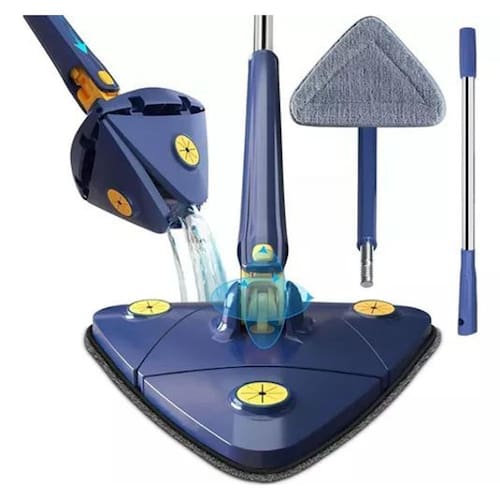Limpeza 360: mop 360 ajustável com rodo de limpeza esfregão triangular Torne a limpeza da sua casa mais fácil e prática com o mop esfregão 360 triangular sua exclusiva cabeça giratória de 360 graus e design triangular revolucionário permitem alcançar todos os cantos, eliminando com facilidade a poeira e sujeira em locais difíceis de acessar.