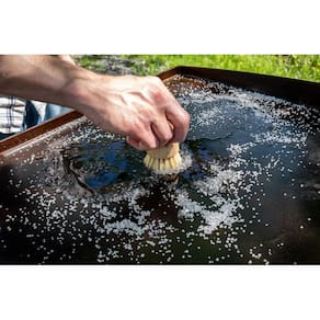 - ELIMINA ODORES | Aprimorado com óleos essenciais puros que naturalmente ajudam a eliminar odores indesejados de alimentos. Este esfoliante com sal na grelha deixará seus utensílios de cozinha de ferro fundido com um cheiro limpo e neutro.