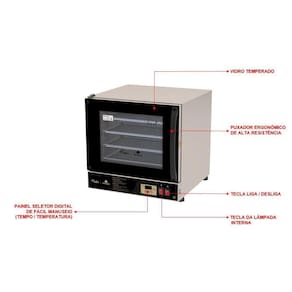 Este equipamento é utilizado para assar pizzas, lasanhas, pães de queijo, bolos, salgados e carnes, proporcionando um cozimento uniforme.