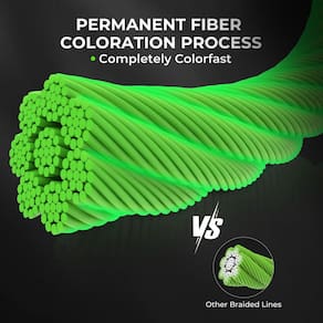 Linha de pesca trançada KastKing SuperPower ColorShield · A linha de pesca trançada KastKing SuperPower ColorShield é fabricada usando uma solução patenteada tingida UHMWPE fibe r. A coloração é injetada na resina de fibra antes do processo de fiação para uma linha completamente resistente à cor. Este processo não permite perda de cor durante carretel, pesca ou uso prolongado. A coloração permanecerá na linha e não irá sangrar ou transferir. · O SuperPower ColorShield com seus recursos colorfast acoplados a baixa elasticidade, diâmetro pequeno e elasticidade quase zero oferece a melhor solução para suas necessidades de linha trançada. Disponível em carretéis de 150, 300 e 500 jardas nas cores mais populares e testes de libras. - Processo de coloração permanente Colorfast – A linha de pesca trançada SuperPower ColorShield é projetada com solução tingida UHMWPE para propriedades colorfast O tingimento em solução garante que a cor permaneça por toda a vida útil da linha e não escorregue, mantendo sua aparência visual. As linhas de pesca trançadas SuperPower ColorShield têm excelentes propriedades resistentes à cor e mantêm sua cor vibrante com o uso contínuo, mesmo após exposição repetida à luz solar, água e condições de pesca adversas. - Alta resistência à abrasão – Com sua alta resistência à abrasão, a linha de pesca trançada SuperPower ColorShield reduz a probabilidade de desgaste, danos ou quebra quando em contato com superfícies ásperas ou obstáculos subaquáticos. Os pescadores podem confiar na alta resistência à abrasão da linha de pesca trançada SuperPower ColorShield para lidar com encontros com objetos pontiagudos, como pedras ou galhos submersos, proporcionando tranquilidade de que a linha resistirá às condições de pesca mais desafiadoras. - Elasticidade quase zero - Com sensibilidade excepcional, a linha de pesca trançada SuperPower ColorShield permite que os pescadores detectem mudanças na composição do fundo, variações na estrutura e movimentos sutis de sua isca, melhorando seu sucesso geral de pesca. - Alta força de nó: a alta força de nó da linha de pesca trançada SuperPower ColorShield permite lançamento, recuperação e combate eficazes de peixes sem se preocupar com falhas de nó que podem levar à perda de peixes. - Baixa memória – Com suas propriedades de baixa memória, a linha de pesca trançada SuperPower ColorShield permanece flexível e flexível, permitindo que os pescadores alcancem apresentações de isca mais realistas e maior sensibilidade para detectar até mesmo as mordidas mais sutis.