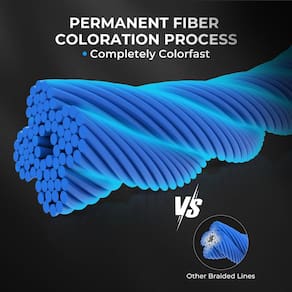 · A linha de pesca trançada KastKing SuperPower ColorShield é fabricada usando uma solução patenteada tingida UHMWPE fibe r. A coloração é injetada na resina de fibra antes do processo de fiação para uma linha completamente resistente à cor. Este processo não permite perda de cor durante carretel, pesca ou uso prolongado. A coloração permanecerá na linha e não irá sangrar ou transferir.