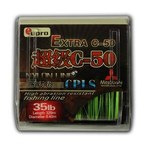 Linha de Pesca Monofilamento Eupro - Extra C-50 Tamanho: 15lb - 0.28mm - 550m Linha de Pesca Monofilamento Eupro - Extra C-50 Linha de monofilamento de alta tecnologia fabricada pela empresa Japonesa Mitsubishi. Possui baixo coeficiente de memória. Indicada para pesca marítima. Indispensável na sua pescaria. 15 - Incluso: 1 peça - Comprimento: 550 metros - Diâmetro: 0.28mm - Resistência: 15lb ou 6,8kg. - Cor : Verde e Preto 25 - Incluso: 1 peça - Comprimento: 450 metros - Diâmetro: 0.33mm - Resistência: 25lb ou 11kg. - Cor : Verde e Preto 30 - Incluso: 1 peça - Comprimento: 350 metros - Diâmetro: 0.37mm - Resistência: 30lb ou 13kg. - Cor : Verde e Preto 35 - Incluso: 1 peça - Comprimento: 320 metros - Diâmetro: 0.40mm - Resistência: 35lb ou 16kg. - Cor : Verde e Preto Origem: China Marca: Eupro