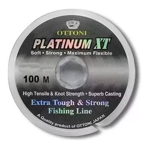 Especificações do Produto: Modelo: Platinum XT. Marca: Ottoni. Tamanho: 1000 m. Diâmetro: 0,35 mm. Resistência: 34,3 lb / 15,6 kg. Ação: Monofilamento. Indicado para: Diversas espécies de peixes. Uso: Água doce e salgada; carretilhas e molinetes. Marca: Não Informado