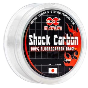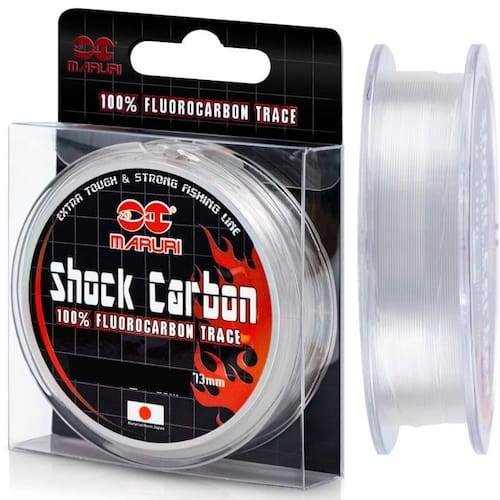 A linha Fluorocarbon Shock Carbon Maruri, linha de alta resistência a abrasão, muito usada na confecção de leaders e chicotes de pesca, seja com isca viva ou artificial. Sua visibilidade dentro d'água é próxima a 0 e sua elasticidade é quase nula. A Linha Leader Maruri Shock Carbon é fabricada no Japão. Dica: Use o líder 10 a 20 por cento maior que a espessura da linha principal, use o tamanho do líder do mesmo tamanho da vara ou também conforme o seu gosto pessoa, não deixando o nó entrar no distribuidor de linha da carretilha, evitando assim pequena freada no arremesso.