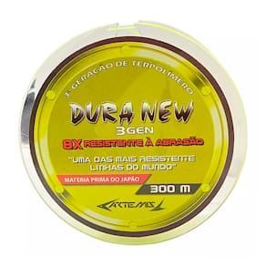 Fabricante: Artemis Modelo: Dura New Matéria prima do Japão Linha: Monofilamento Diâmetro: 0,60mm Resistência: 60lbs Metragem: 300 Metros Cor disponível: Amarelo e verde
