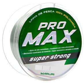 A linha Monofilamento Pro Max Super Strong é indicada para peixes de água doce e salgada, em situações onde a linha é exigida ao máximo, mantendo suas características de resistência e flexibilidade. Sua resistência a abrasão é muito superior à dos monofilamentos convencionais. A linha Pro Max Super Strong possui superfície lisa e macia, com ótima resistência ao atrito e desgaste.