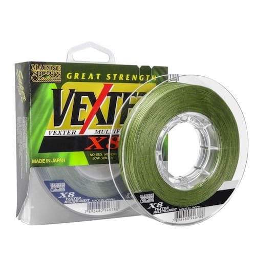 A Vexter X8 é fabricada no Japão e esse modelo vem com a opção de carretel de 300m. Como o nome sugere, foram usados oito fios trançados para criar esta linha, característica que a torna visivelmente mais macia e flexível em relação ao modelo antigo. Estas características somadas proporcionarão arremessos sensivelmente mais longos, pois o atrito com os passadores será menor.