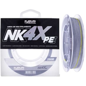 A linha NK 4X é resultado da aplicação da mais alta tecnologia, trançada com maquinário e matéria prima de última geração, resultando uma trança bem mais unida e compacta; super lisa, evitando atrito e corrosão aos passadores, proporcionando arremessos mais longos e precisos, sensibilidade elevada ao máximo, sinta os ataques dos peixes por mais sutil que ele seja, elasticidade zero, possibilitando fisgadas mais rápidas e, portanto mais precisas; zero memória para melhorar o arremesso e evitar cabeleira. Linha Multifilamento NK 4X é trançada em 4 fios de 100% PE sua fabricação é em polietileno especial.