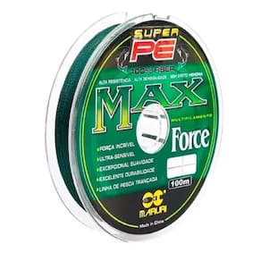 Ançadas 100% PE, deixando assim com um acabamento mais arredondadoImpermeabilizada baixa absorção de água , desliza facilmente pelos passadores proporcionando arremessos mais longos e precisos.Tecnologia avançada de revestimento, resistente à abrasão, mais forte e resistente à água salgada, resultando em maior durabilidade.Características Gerais:- Linha de multifilamento trançada em 4 fios de 100% polietileno;- Alta sensibilidade: permite ao pescador uma reação mais rápida às fisgadas do peixe;- Elasticidade zero: reduz o risco com as garatéias por não provocar chicoteada;- Eficiência garantida: uso amador e ;- Mais força, maciez e resistência que as linhas tradicionais;- Revestida com repelente à água: baixa absorção de água;- Não danifica os passadores;- Desenvolvida na cor verde escuro;- Excelente resistência;- Fácil manuseio;- Sem efeito memória;Especificações Técnicas:- Cor: Verde- Marca: Maruri Fishing- Modelo: Max Force 4X- Espessura: 0.24mm- Resistência: 26Lb 11.8kg - Comprimento: 100m Marca: Não Informado Ean: 1000000160147