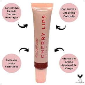 O Lip Balm Cherry Lips da Ruby Rose é um hidratante labial que proporciona cor e brilho aos lábios, além de oferecer hidratação. Um hidratante labial que combina cuidados e beleza ao mesmo tempo em que oferece uma cor suave e um brilho delicado. Este balm não só cuida dos lábios ressecados, mas também oferece um aroma agradável de cereja, que complementa a experiência de uso. É uma ótima opção para quem busca um produto prático para manter os lábios hidratados e com um visual bonito no dia a dia.