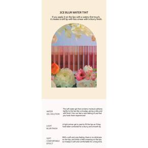 1. Se você aplicar nos lábios com um primeiro toque aquoso, ele cria um lábio macio com menos manchas com um acabamento desfocado. 2. Tinta de água borrada 3CE; se você aplicar como uma mancha nos lábios com um primeiro toque aquoso, ele cria um lábio macio com menos manchas com um acabamento desfocado. 3. Solução de gel de água; o gel de água suave que contém umidade adere levemente aos lábios como uma mancha, dando um acabamento sedoso e macio | Você pode sentir uma nova sensação de uso que nunca experimentou. 4. Acabamento azul claro; um gel primer leve é utilizado para preencher os lábios como se tivessem sido corrigido para um lábio desfocado e suave. 5. Macio e confortável: com uma sensação macia e aconchegante, não há aderência nos lábios, e há pequenas manchas nos lábios, por isso o mantém macio e confortável por um longo tempo.