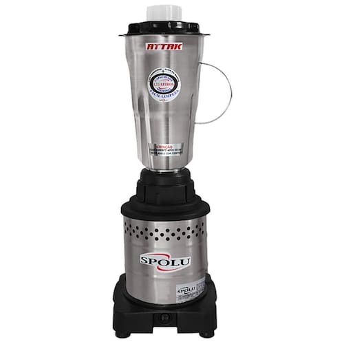 Liquidificador Alta Rotação 1,75L Attak SPL038 Spolu. Ideal para lanchonetes, bares, restaurantes, cozinhas profissionais e similares. É um equipamento de alta rotação, com copo de 1,75 litros resistente, que liquidifica e mistura com rapidez e qualidade. Possui base em polipropileno, copo em inox com solda reforçada e tampa atóxica com visor. Suas lâminas com ângulos diferenciados proporcionam melhor movimentação dos ingredientes, e a base antiderrapante assegura estabilidade durante o funcionamento. POTÊNCIA: 800W. CONSUMO: 0,4KW/h. ROTAÇÃO: 18000rpm. PESO: 2,30kg. DIMENSÕES(CxAxL): 20x54x19,5cm. Liquidificador Alta Rotação 1,75L Attak SPL038 Spolu é na Atau.