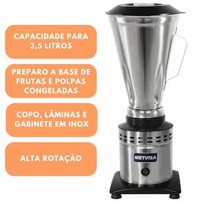 Liquidificador Industrial Alta Rotação 3,5 Litros 1000W - Metvisa